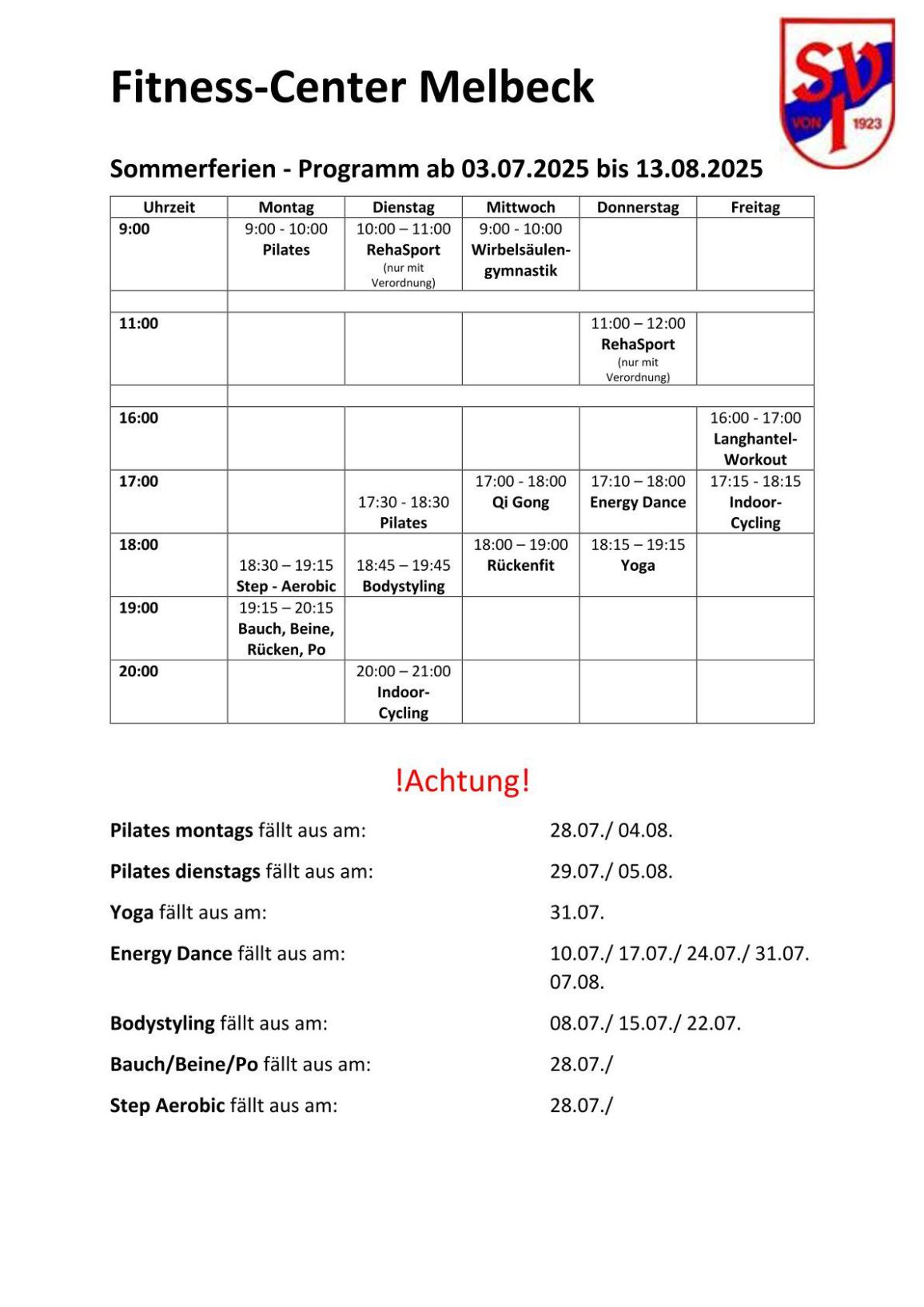 An Feiertagen einschl. 24.12. u. 31.12. bleibt das Fitness-Center geschlossen.