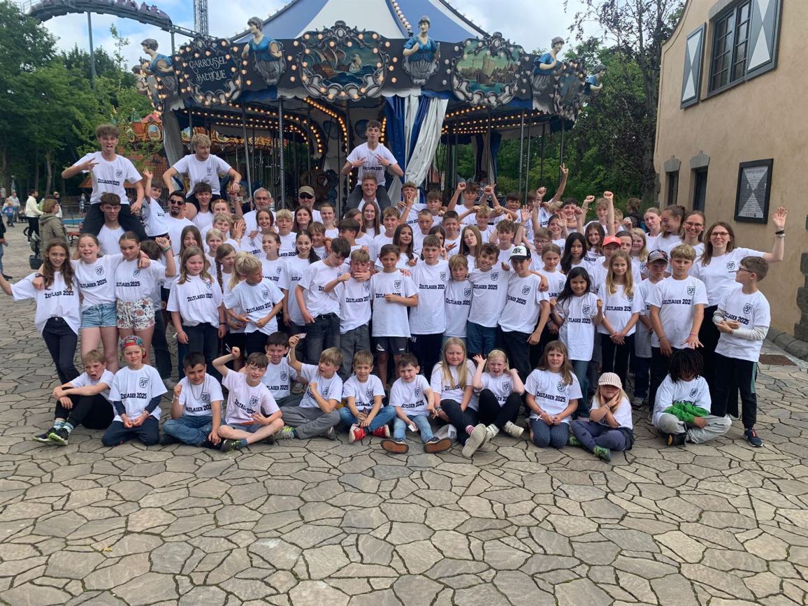 Am Mittwoch dann das Highlight für viele: der Ausflug in den Hansapark! Nach dem Frühstück und ausgestattet mit SVI-Shirts ging es los. Nach einem Gruppenfoto am Eingang hatten die Kinder und Betreuerinnen und Betreuer bis zum späten Nachmittag Zeit, den Freizeitpark in Kleingruppen zu erkunden. Viele nutzten die Gelegenheit, um Achterbahnen und andere Fahrgeschäfte zu fahren. Das Wetter spielte mit, sodass auch die Wasserattraktionen beliebt waren. Zurück im Camp wartete ein besonderes Abendessen: Burger zum Selbstbelegen. Danach konnten mitgebrachte T-Shirts oder kleine Stofftaschen gestaltet werden.